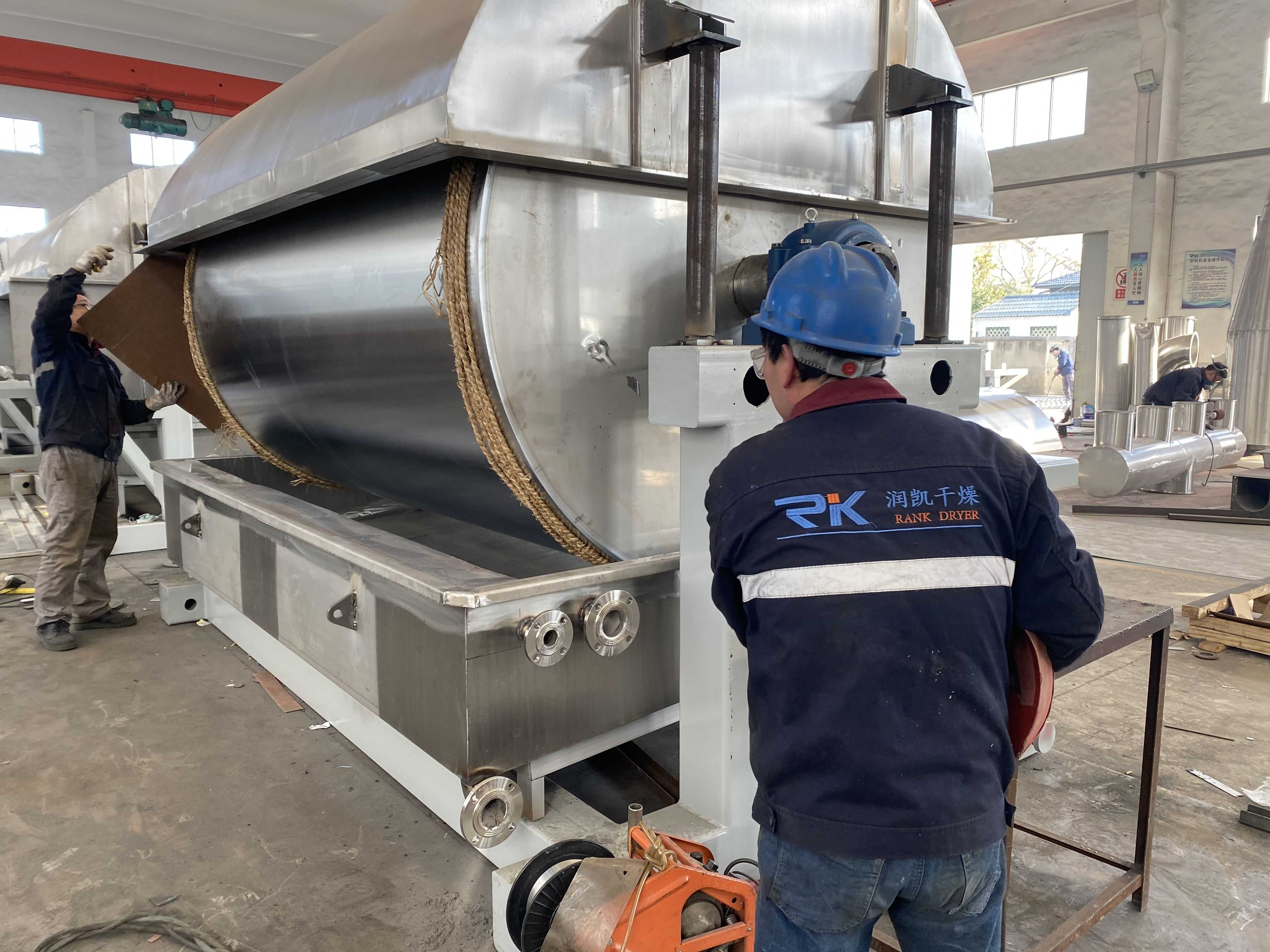 潤凱干燥廠房內,工人們正在趕制一批滾筒刮板干燥機訂單。