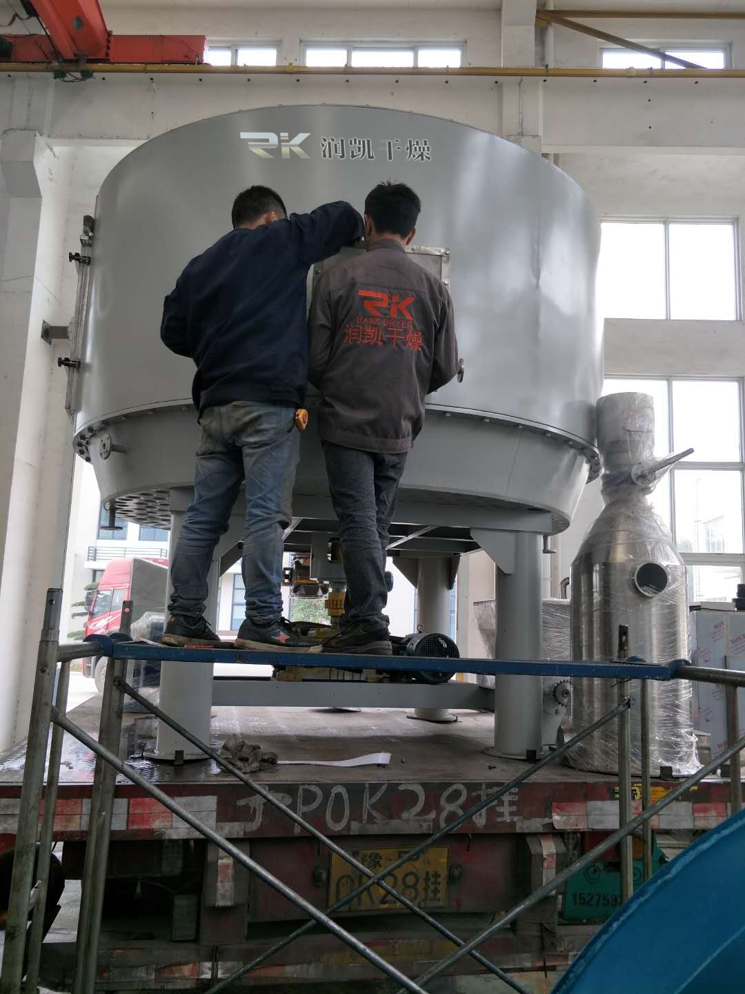 某化工廠簽訂的一臺非標(biāo)盤式干燥機(jī)現(xiàn)以發(fā)運(yùn),層數(shù)共6層,微負(fù)壓運(yùn)行,約3300mm高(不含加料器)!